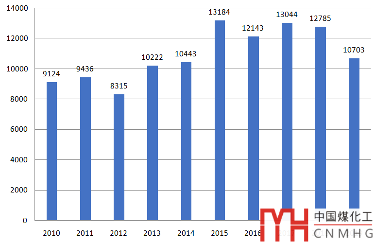 圖5-3 2010~2019年全國新增電力裝機(jī)容量情況(單位:萬千瓦)