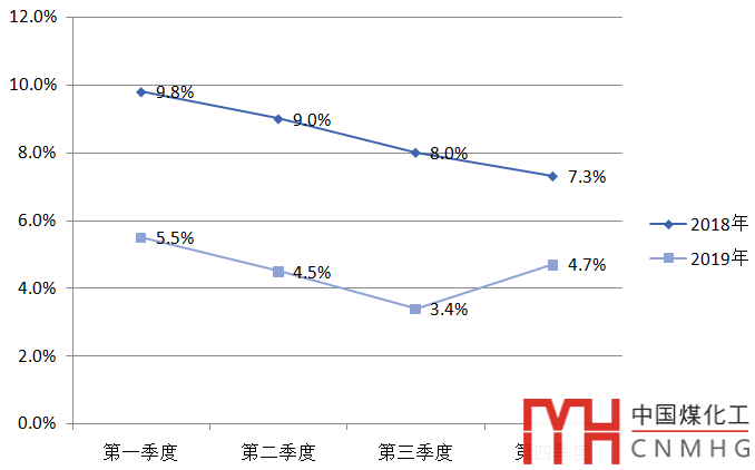 2019年,各季度全社會用電量增速分別為5.5%、4.5%、3.4%和4.7%。通過對比可以看出,2019年每個(gè)季度增速均低于2018年同期水平。