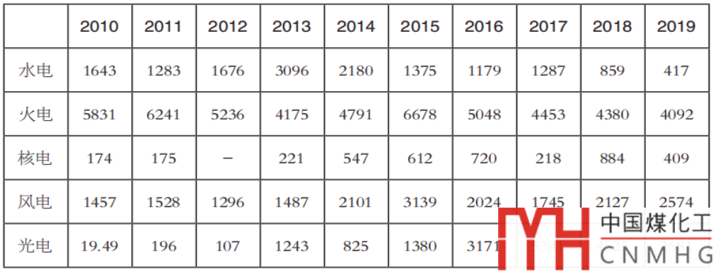 表5-3 2010~2019年各類發(fā)電新增裝機(jī)情況