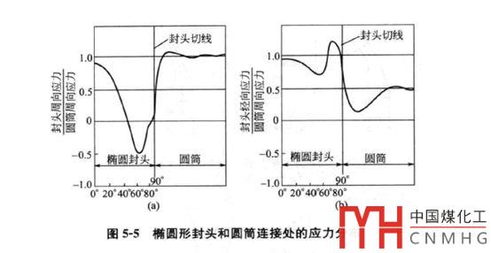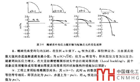 而根據(jù)分析(鄭津洋《過程設備設計》),對于標準橢圓封頭,其σθ在封頭中心頂點和赤道處大小相等,但符號相反,即頂點處為拉伸應力,赤道處為壓縮應力,大小等于筒體中的σθ。