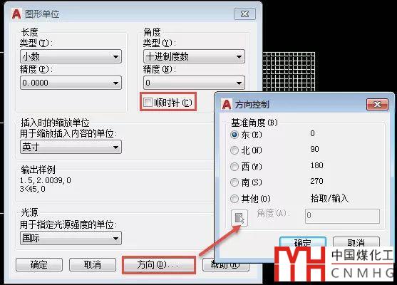 更多的時候我們會去用單位對話框設置長度、角度的參數(shù)顯示的格式和小數(shù)點后精確的位數(shù),在一些特殊情況下,還可以設置角度計算的方向是順時針或逆時針,還可以設置基準角度的方向。