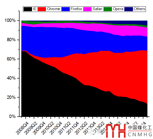 仍以2008年第3季度以來常用瀏覽器的市場份額來示例面積圖(Area Plot),數(shù)據(jù)來源于http://gs.statcounter.com/。