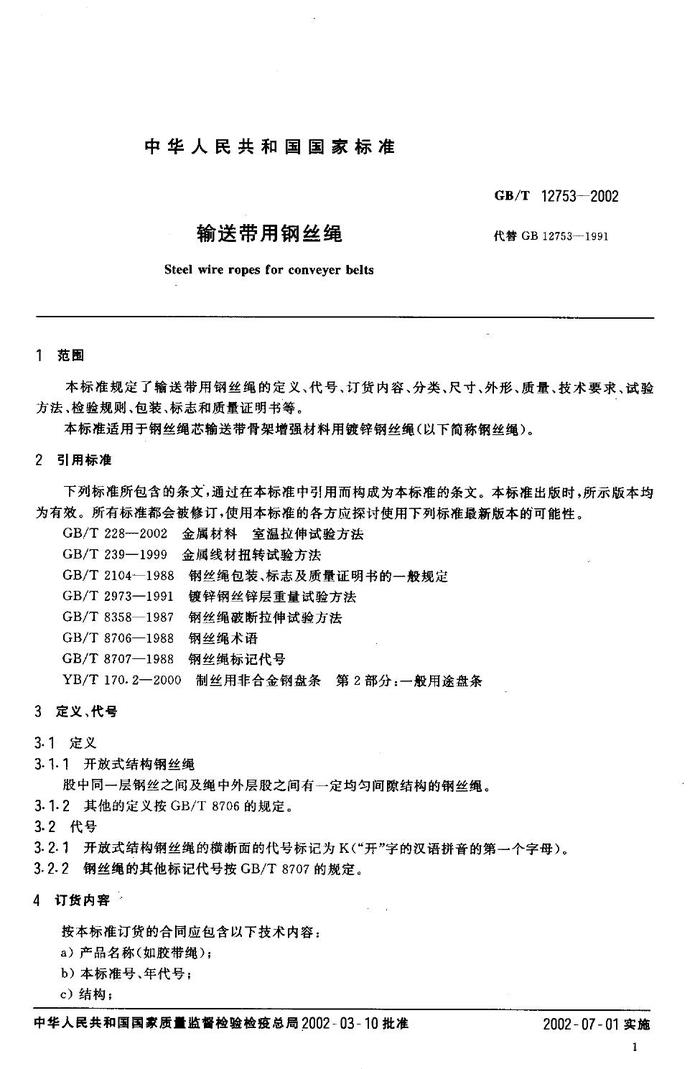GBT12753-2002 輸送帶用鋼絲繩pdf