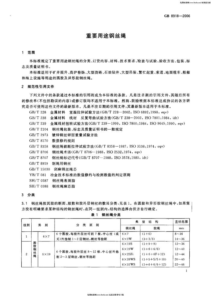 GB8918-2006重要用途鋼絲繩pdf