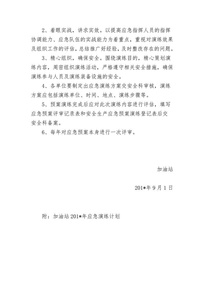 2022年加油站應(yīng)急預(yù)案演練計(jì)劃方案doc