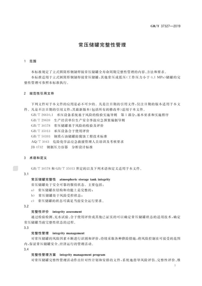 之GB∕T37327-2019 常壓儲罐完整性管理pdf