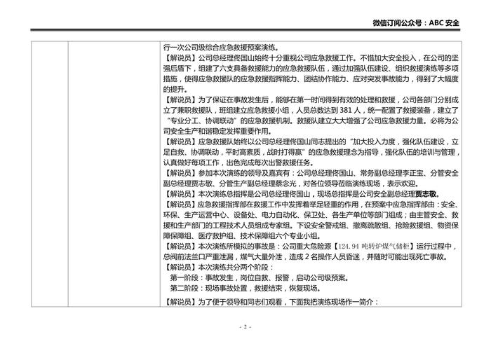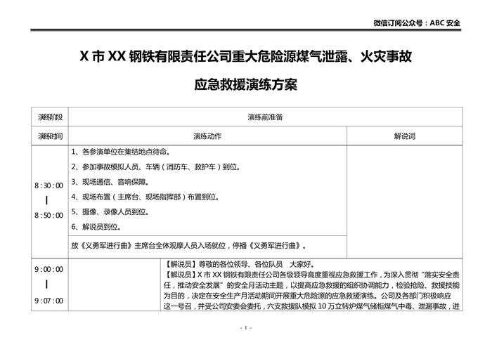 鋼鐵公司重大危險(xiǎn)源煤氣泄漏、火災(zāi)事故應(yīng)急救援演練方案腳本doc 鋼鐵公司重大危險(xiǎn)源煤氣泄漏、火災(zāi)事故應(yīng)急救援演練方案腳本doc