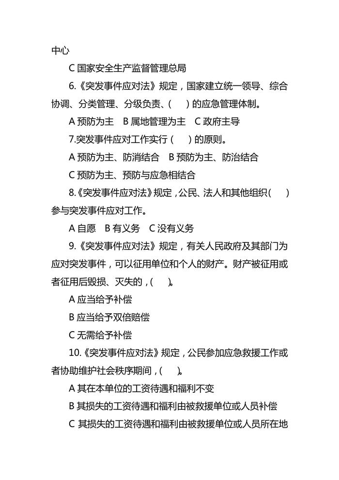 安全生產(chǎn)應(yīng)急救援試題2及答案doc