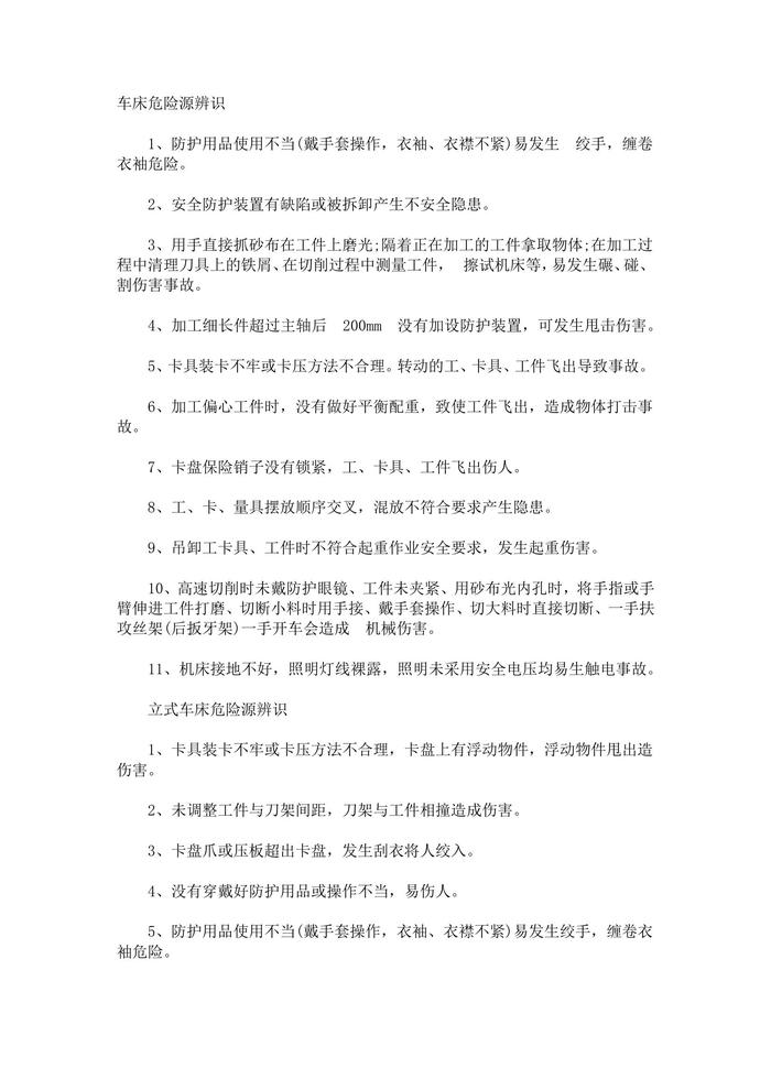 車床危險(xiǎn)源辨識和風(fēng)險(xiǎn)評價(jià)清單docx