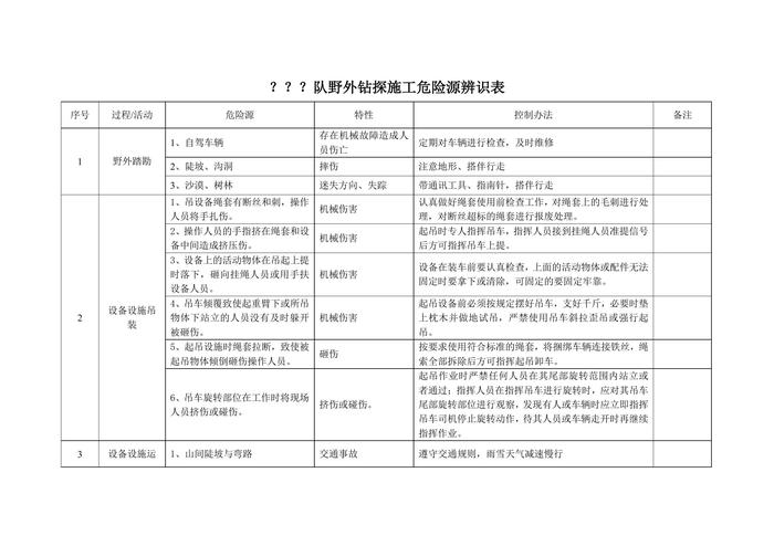 野外鉆探施工風(fēng)險源辨識及風(fēng)險評價表doc