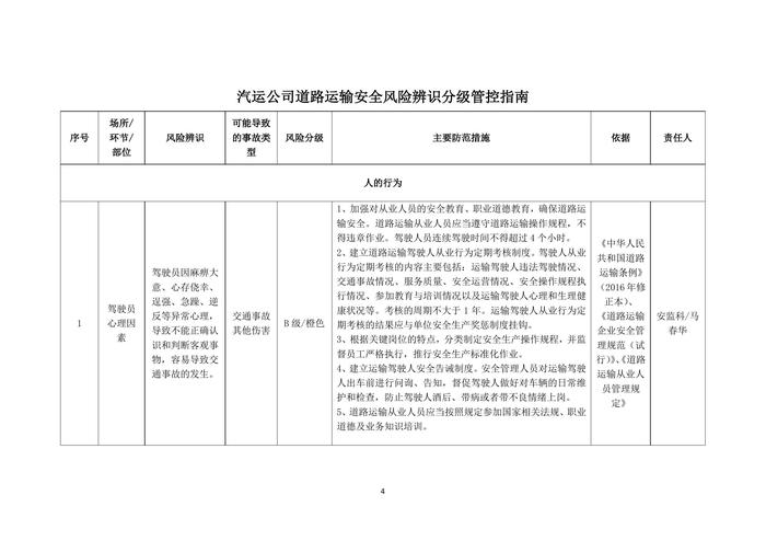 汽運(yùn)公司道路安全風(fēng)險辨識分級管控指南doc