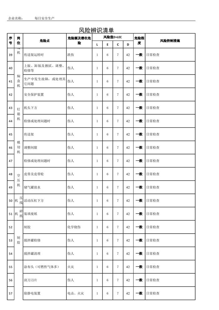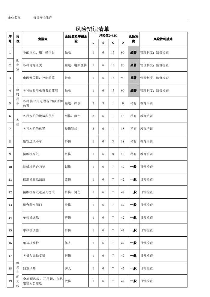 公司安全風險辨識清單與風險評價清單xls
