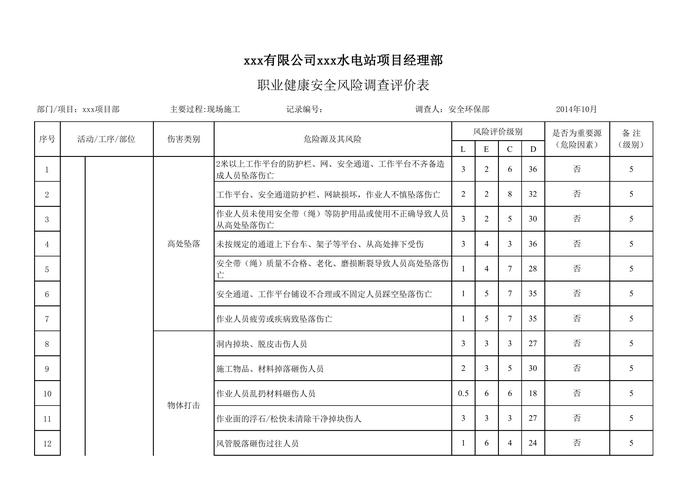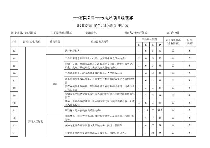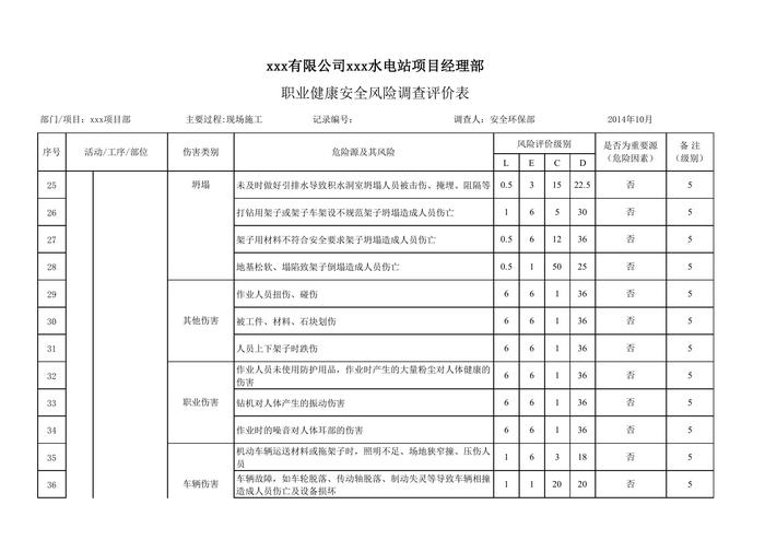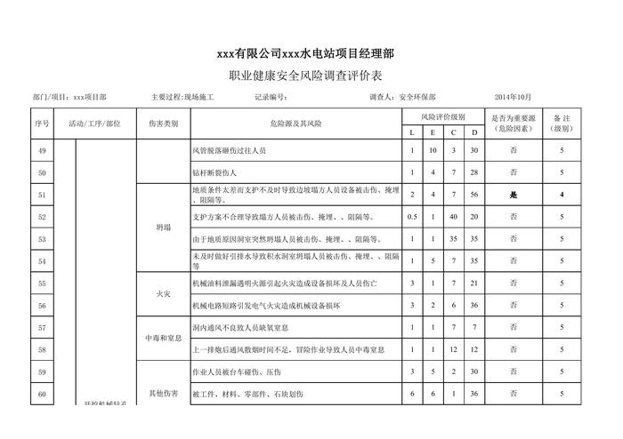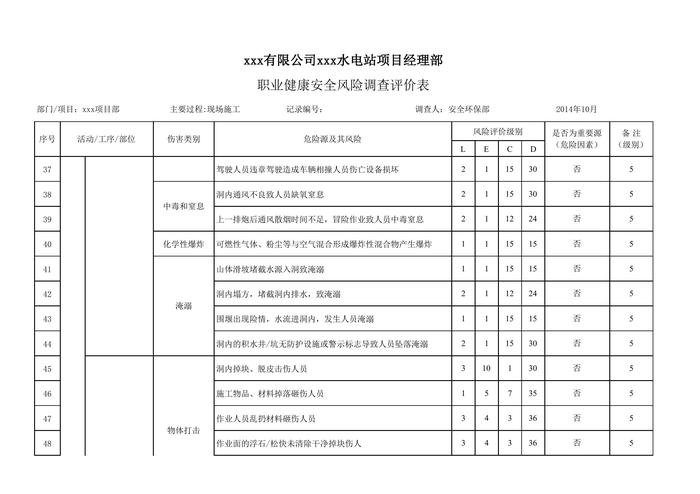 水電站項(xiàng)目職業(yè)健康安全風(fēng)險(xiǎn)調(diào)查和評(píng)價(jià)清單(82頁(yè))xls