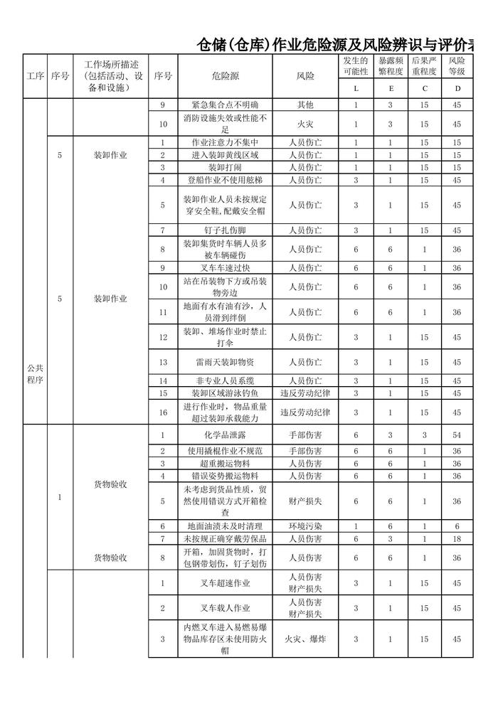 倉(cāng)儲(chǔ)倉(cāng)庫(kù)作業(yè)危險(xiǎn)源及風(fēng)險(xiǎn)辨識(shí)與評(píng)價(jià)表xls