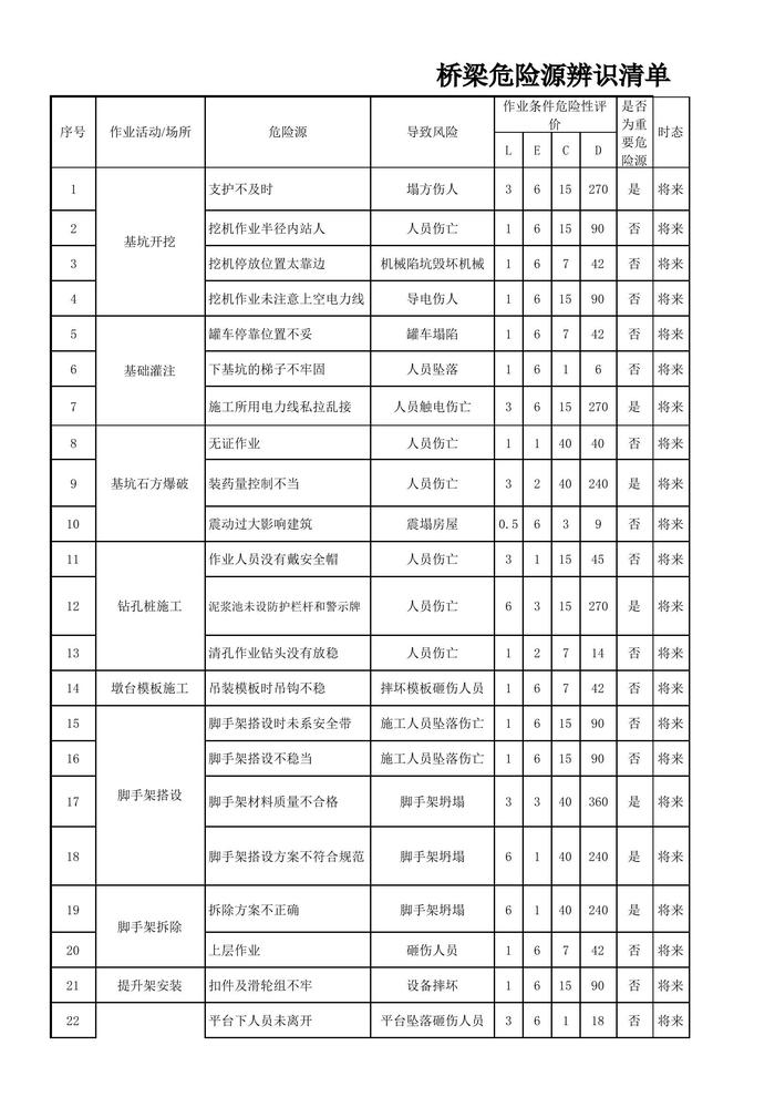 橋梁危險源辨識和風(fēng)險評價清單xls
