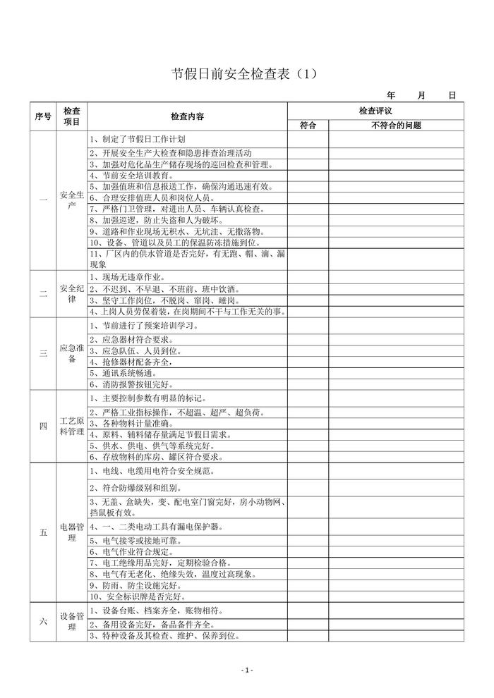 節(jié)前檢查表匯編10套doc