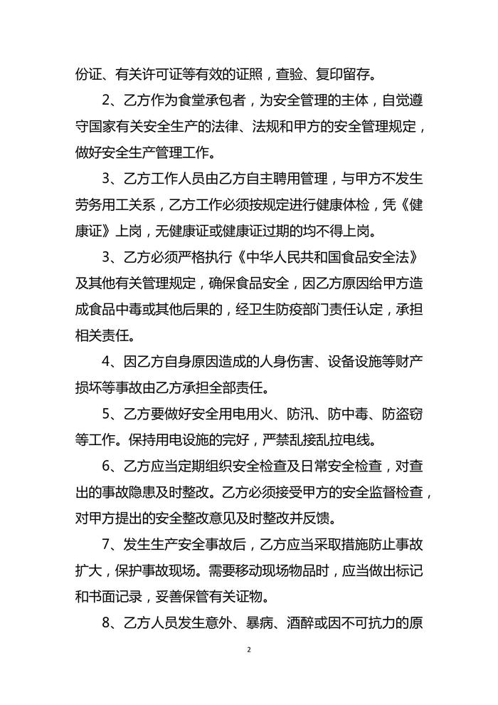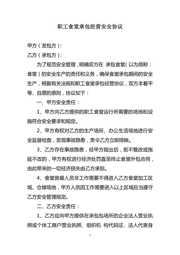 職工食堂承包經(jīng)營安全協(xié)議(范本)docx