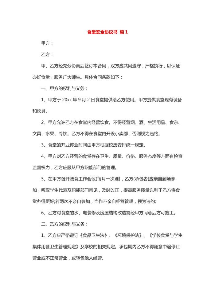 食堂安全協(xié)議書docx