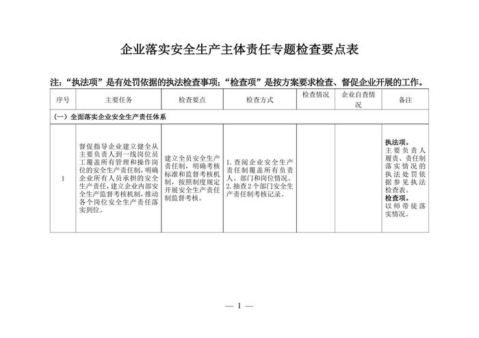企業(yè)落實安全生產(chǎn)主體責(zé)任專題檢查要點表docx