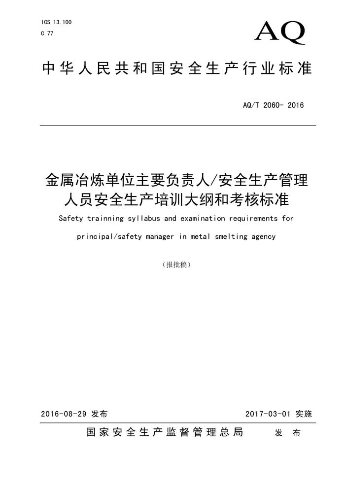 2016 金屬冶煉單位主要負(fù)責(zé)人安全生產(chǎn)管理人員安全生產(chǎn)培訓(xùn)大綱和考核標(biāo)準(zhǔn)pdf