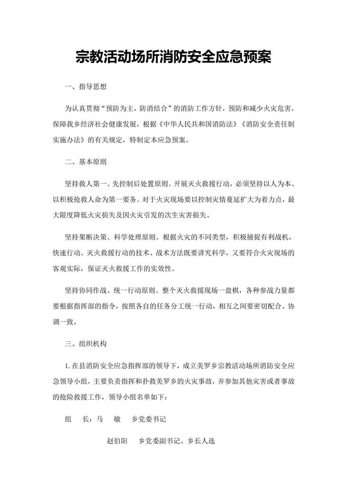 宗教活動場所消防安全應急預案docx