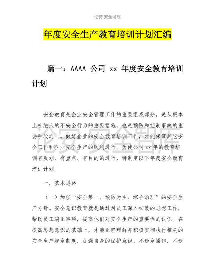 年度安全生產(chǎn)教育培訓(xùn)計劃匯編(29頁)docx
