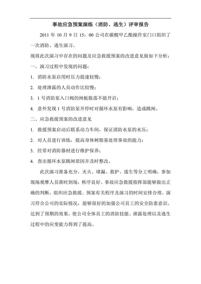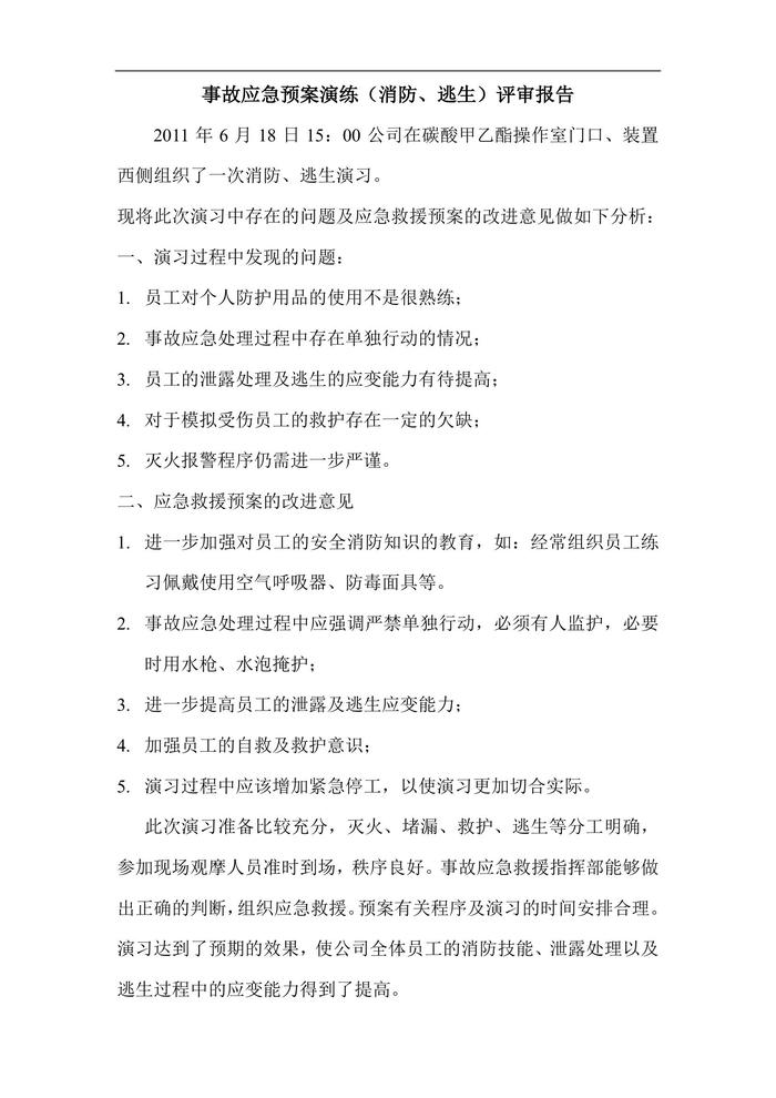 事故應急預案演練(消防、逃生)評審報告doc 事故應急預案演練(消防、逃生)評審報告doc