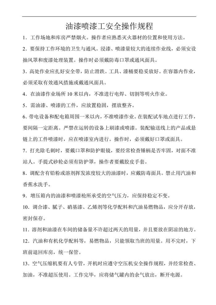 油漆噴漆工安全操作規(guī)程(1)doc