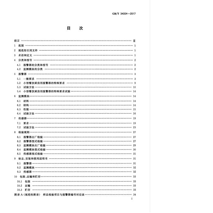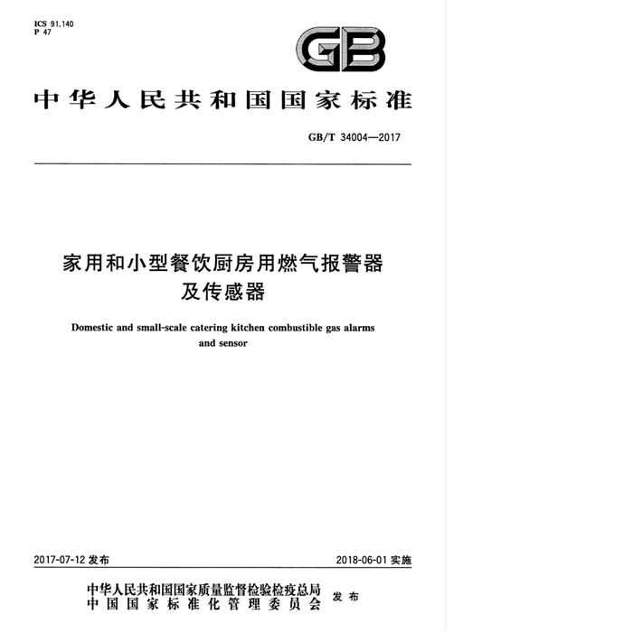 GBT 34004-2017 家用和小型餐飲廚房用燃?xì)鈭?bào)警器及傳感器 pdf