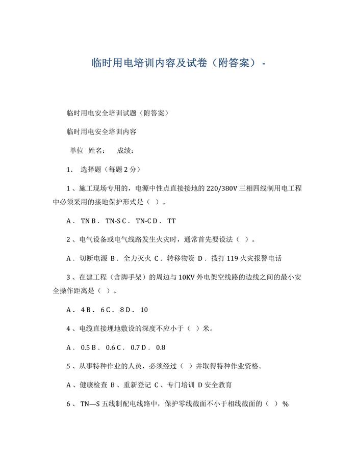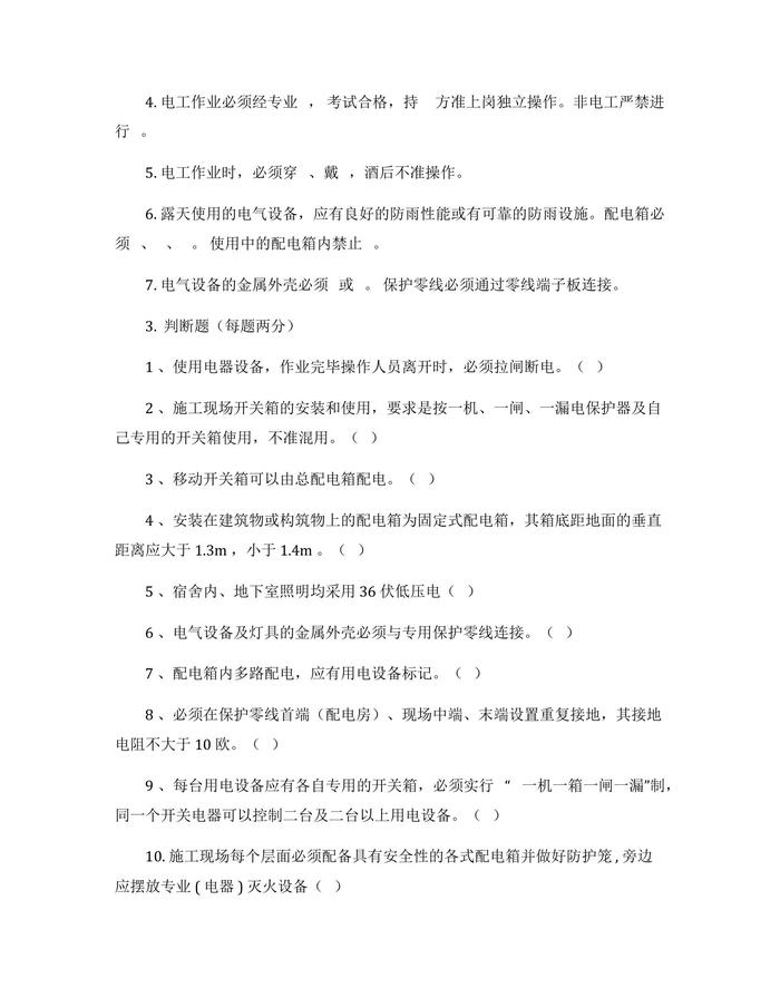 臨時(shí)用電培訓(xùn)內(nèi)容及試卷docx