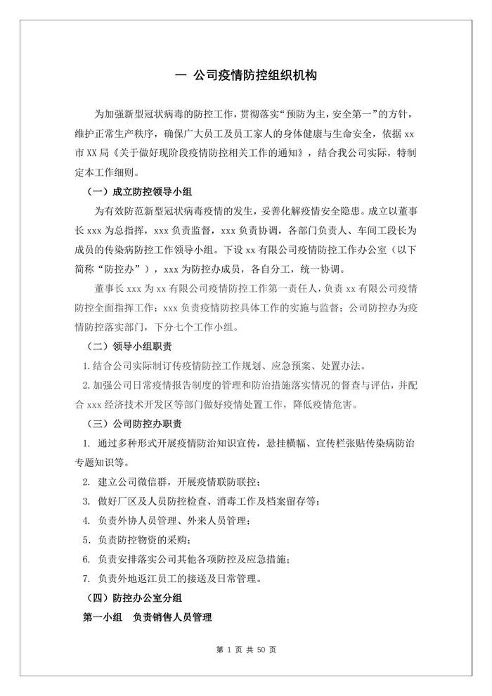 企業(yè)疫情防控管理文件參考模板匯編(52頁(yè))docx