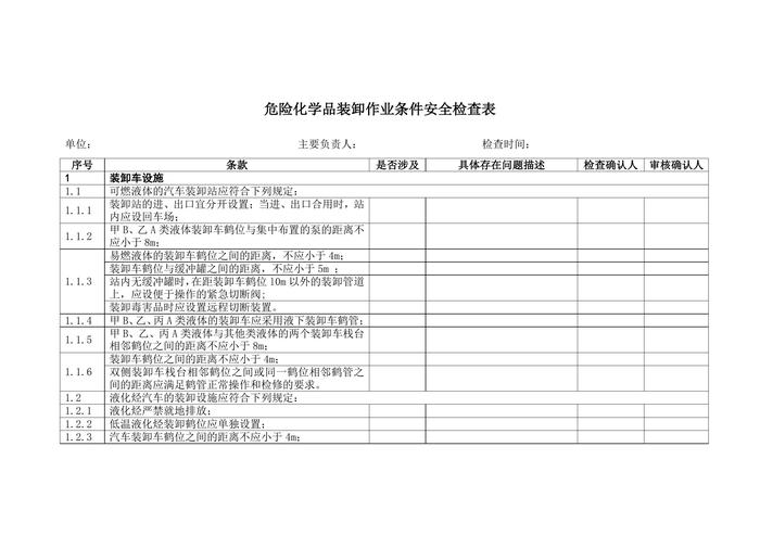 危險(xiǎn)化學(xué)品裝卸作業(yè)條件安全檢查表doc
