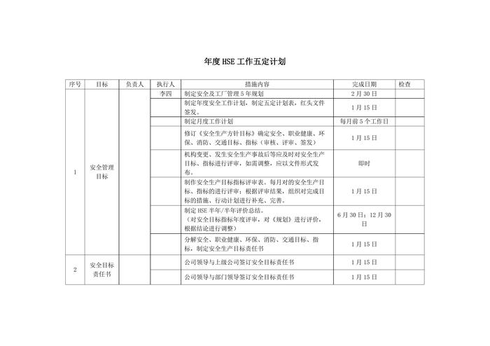 2022年度公司HSE工作五定計劃docx