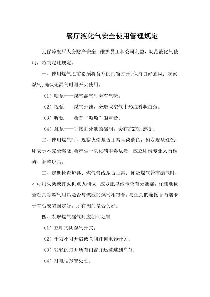 餐廳液化氣安全使用管理規(guī)定doc