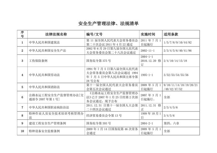 最新高速公路(橋梁施工)安全生產(chǎn)管理法律法規(guī)清單doc