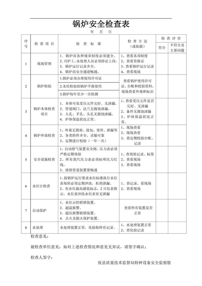 鍋爐安全檢查表doc