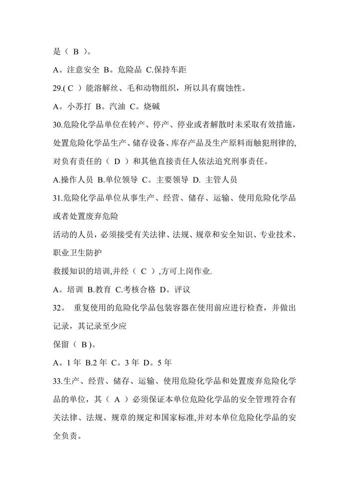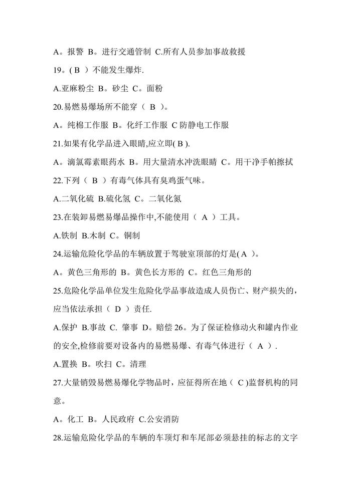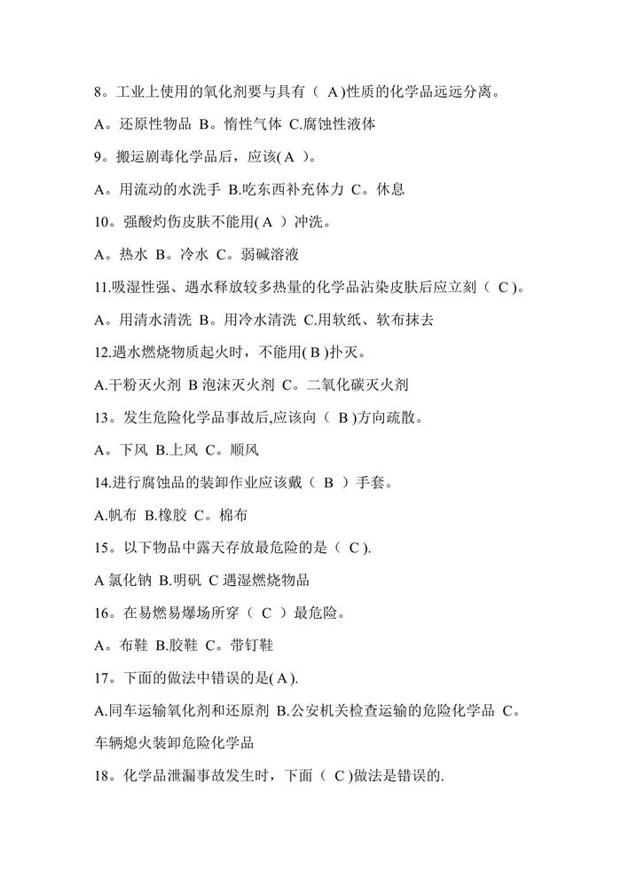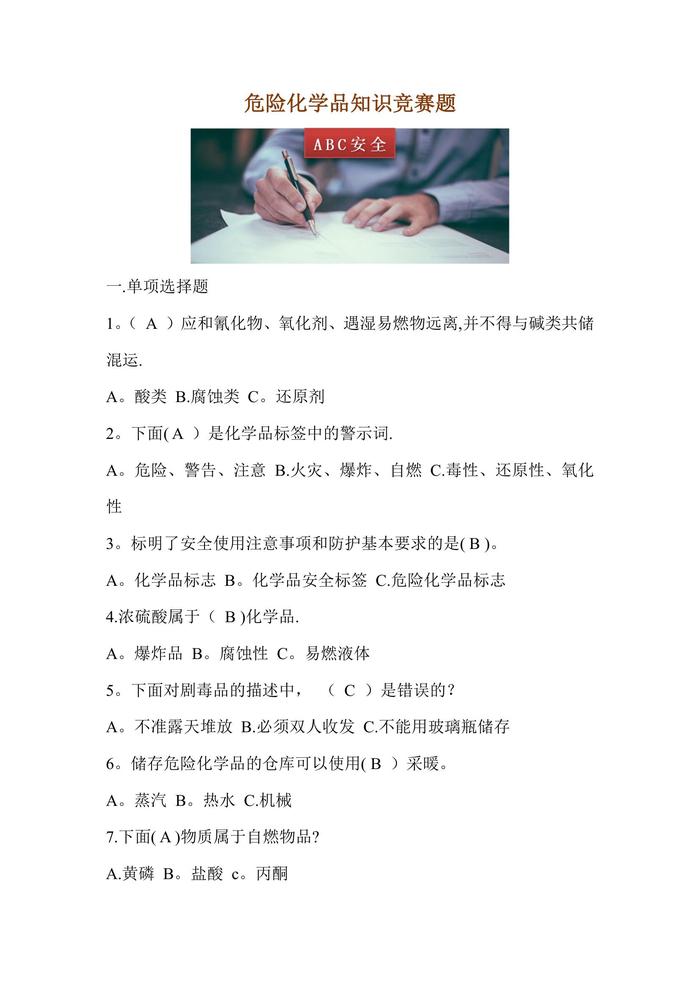 危險(xiǎn)化學(xué)品安全知識(shí)考試試題庫(kù)doc