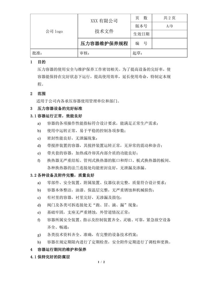 壓力容器維護(hù)保養(yǎng)規(guī)程doc