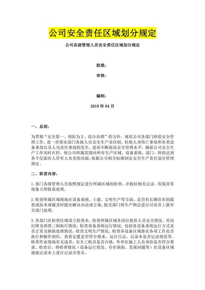 ~公司安全生產(chǎn)責(zé)任區(qū)域劃分規(guī)定(50頁)doc