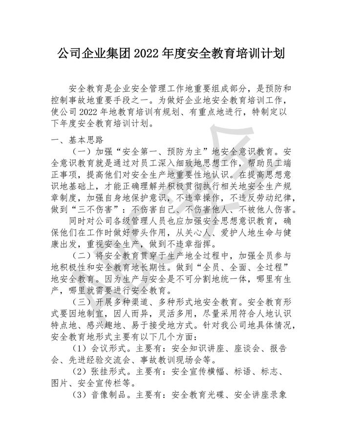 企業(yè)集團2022年度安全教育培訓(xùn)計劃docx