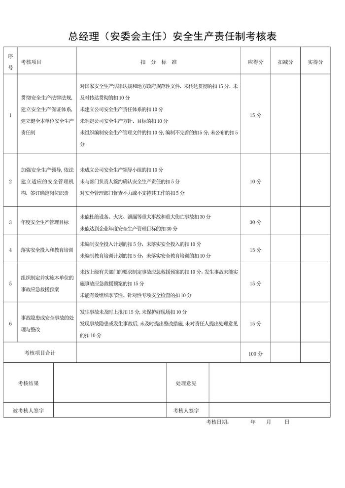 全套安全生產(chǎn)責(zé)任制考核表doc