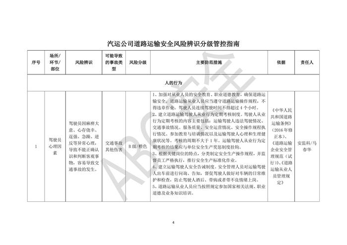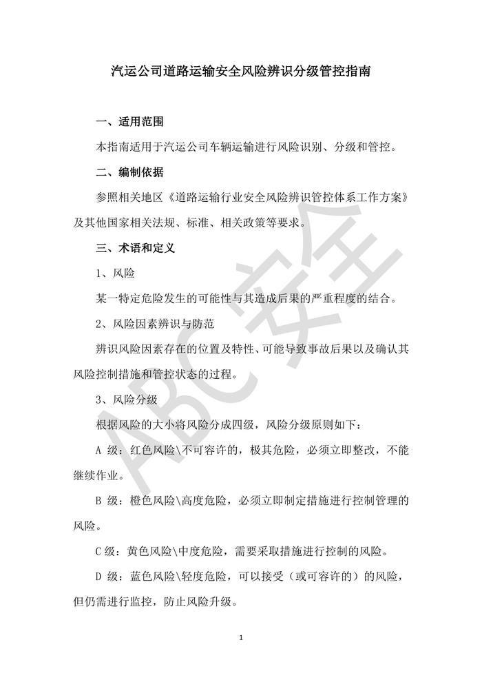 道路運(yùn)輸安全風(fēng)險(xiǎn)辨識(shí)分級(jí)管控指南doc