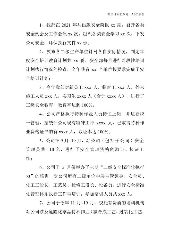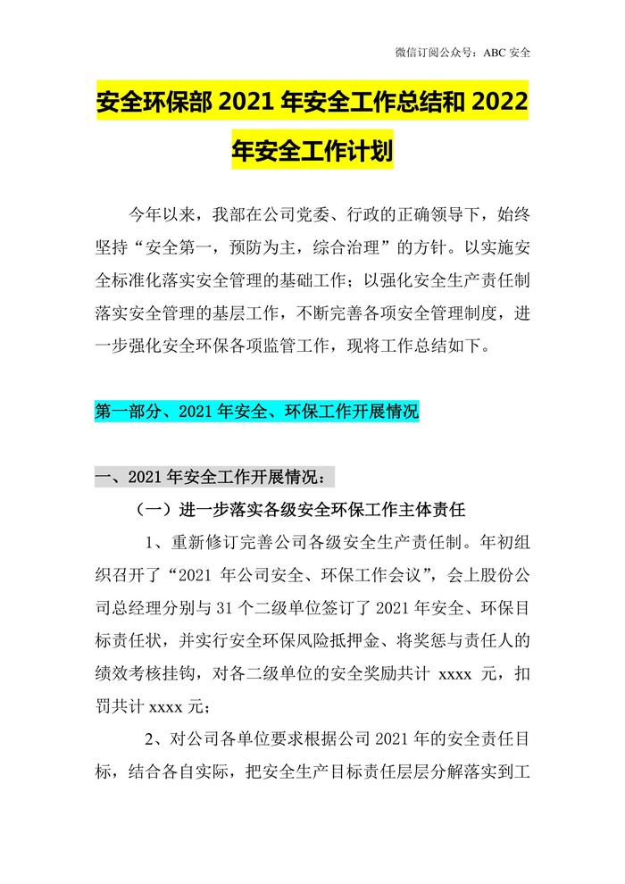 安全環(huán)保部(安環(huán)部)2021年安全工作總結(jié)和2022年安全工作計劃docx