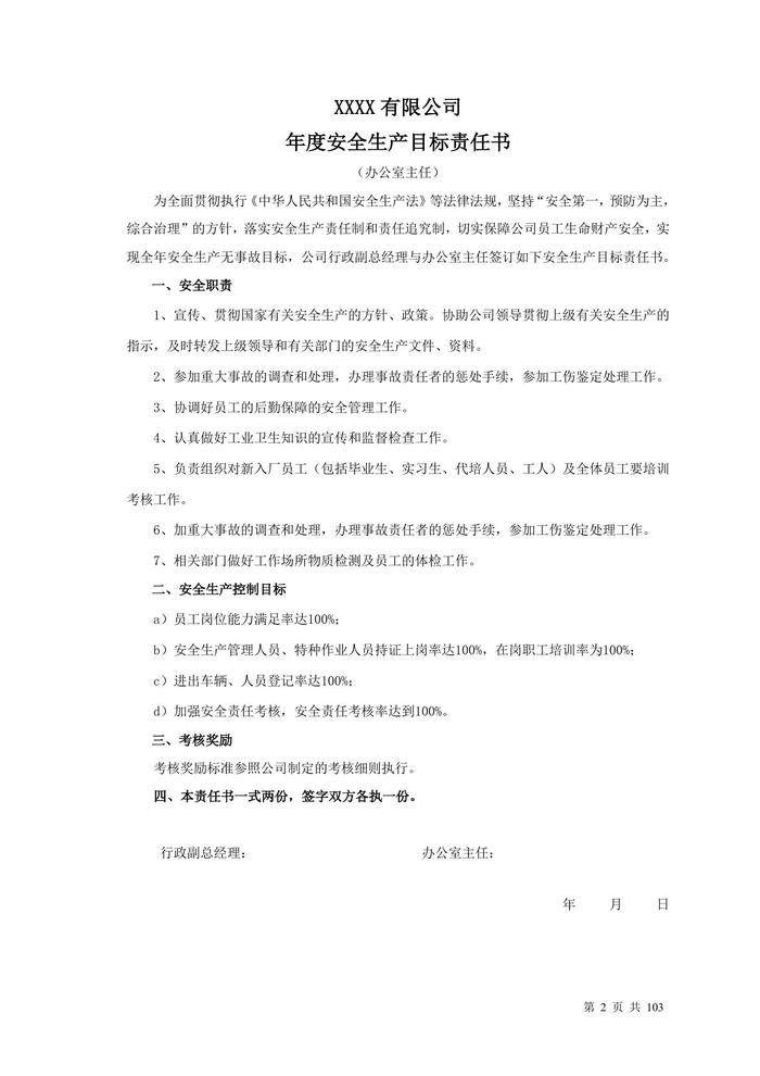 大崗位安全目標(biāo)責(zé)任書(103頁)doc