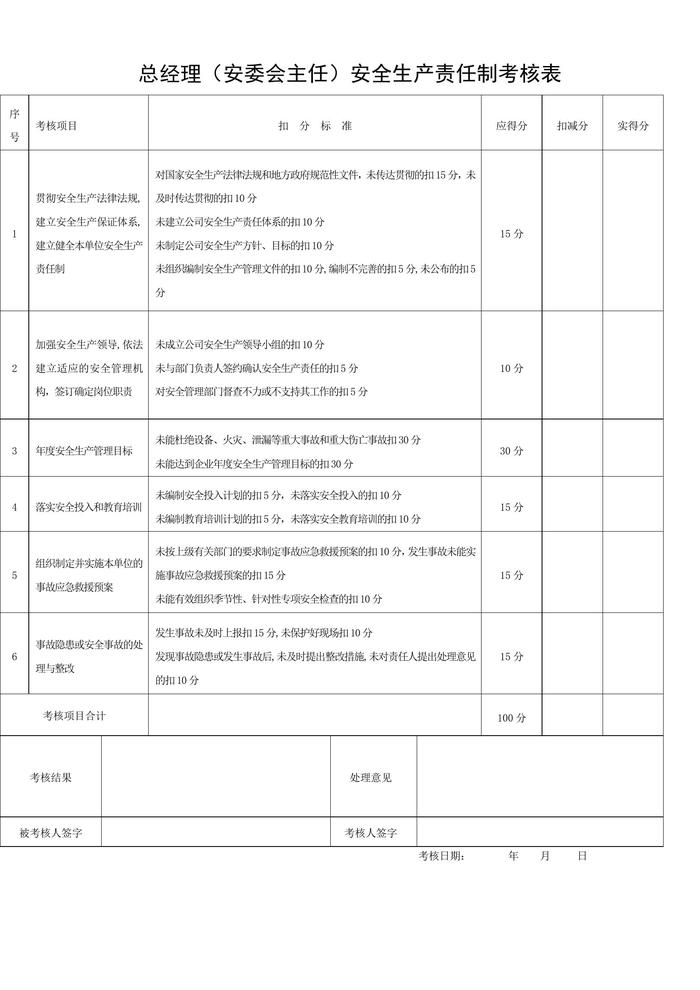 產(chǎn)責(zé)任制考核表doc