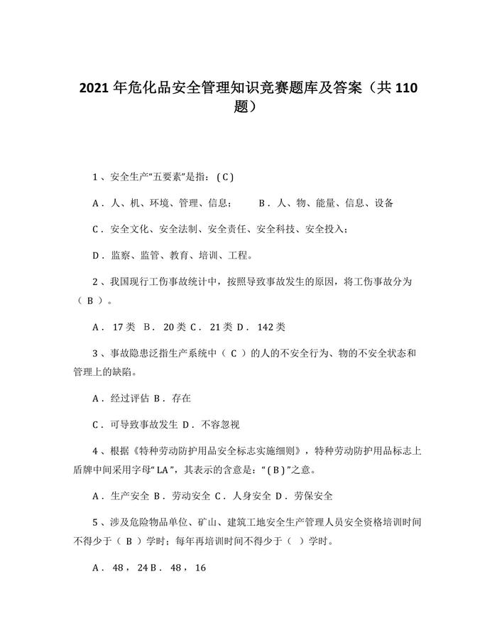 【題庫】2021年?;钒踩芾碇R競賽題庫及答案(共110題)docx 【題庫】2021年?;钒踩芾碇R競賽題庫及答案(共110題)docx