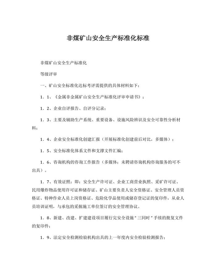 非煤礦山安全生產(chǎn)標(biāo)準(zhǔn)化標(biāo)準(zhǔn)(1)docx