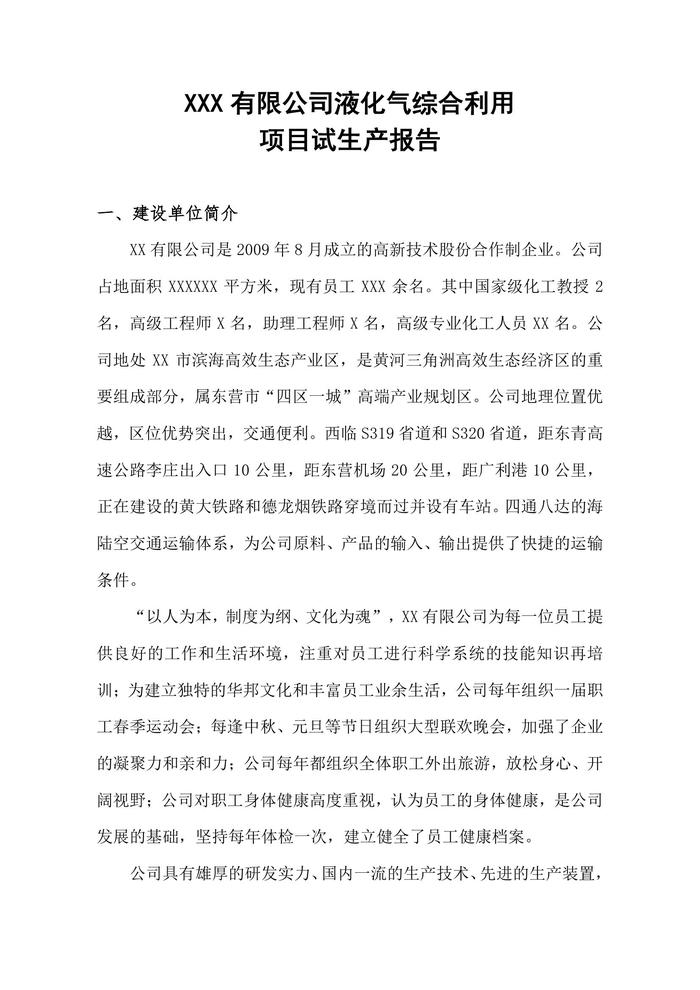 XXX有限公司項(xiàng)目試生產(chǎn)總結(jié)報(bào)告(1)doc