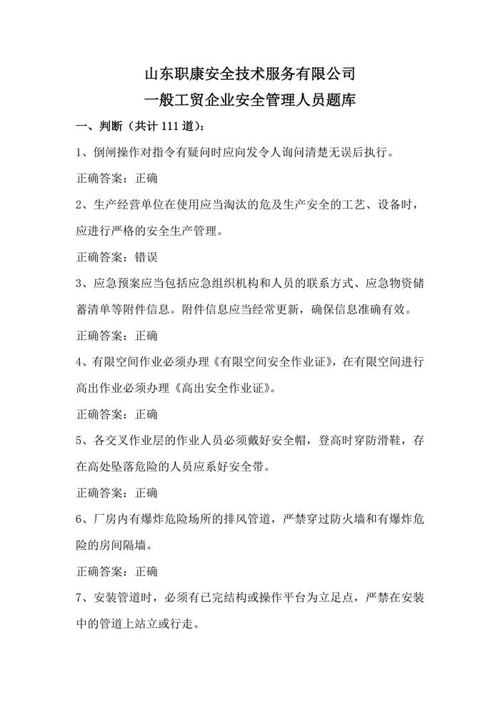 安全考試試題一般工貿(mào)企業(yè)安全管理人員題庫docx