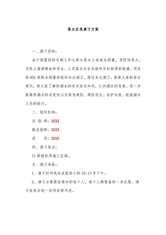 落水應急演習方案docx
